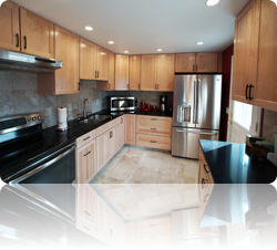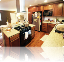Remodeling your kitchen with modern kitchen appliances, faucets, a beautiful countertops and energy saving lighting will create a healthy environment in one of the main rooms in your home. Your kitchen layout and organization can be maximized by adding an island or more cabinets.